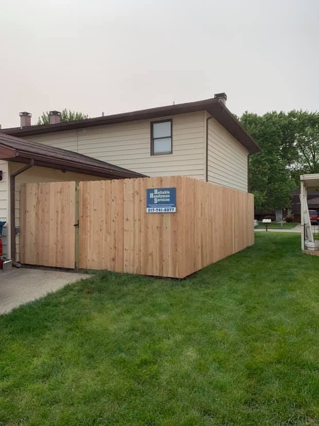 Enhance your home’s privacy and security with expert fencing services from Reliable Handyman Services in Springfield, IL. Whether you need a brand-new fence installed, regular maintenance, or quick repairs, our professional fencing contractors are here to help. With over five decades of combined experience, we provide customized solutions to meet your fencing needs. Call us today at 217-860-7436 to schedule your service or learn more about our fencing options.
